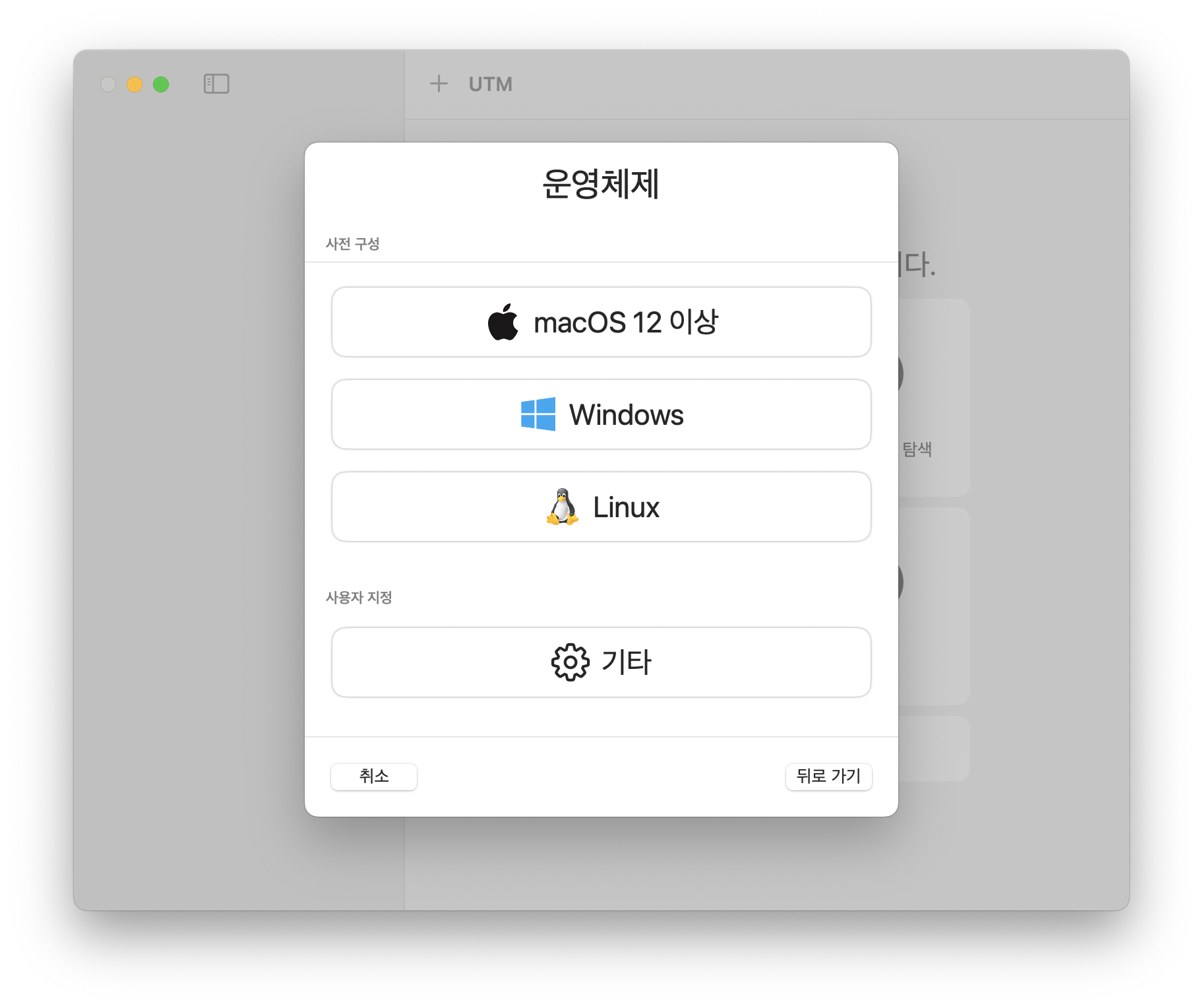 UTM은 맥에서 QEMU 가상화 엔진을 사용하여, 준수한 속도의 가상 환경을 제공한다. 그러나 UTM에서는 QEMU 말고도 여러가지 엔진을 사용할 수 있고, 그중에 Apple 가상화라는 옵션이 있다. 이 걸 사용하면 실험적이지만, 굉장히 빠른 속도의 가상 환경을 사용할 수 있다. (단 호스트와 아키텍처가 일치하지 않는 경우, Apple 가상화를 사용할 수 없다.)